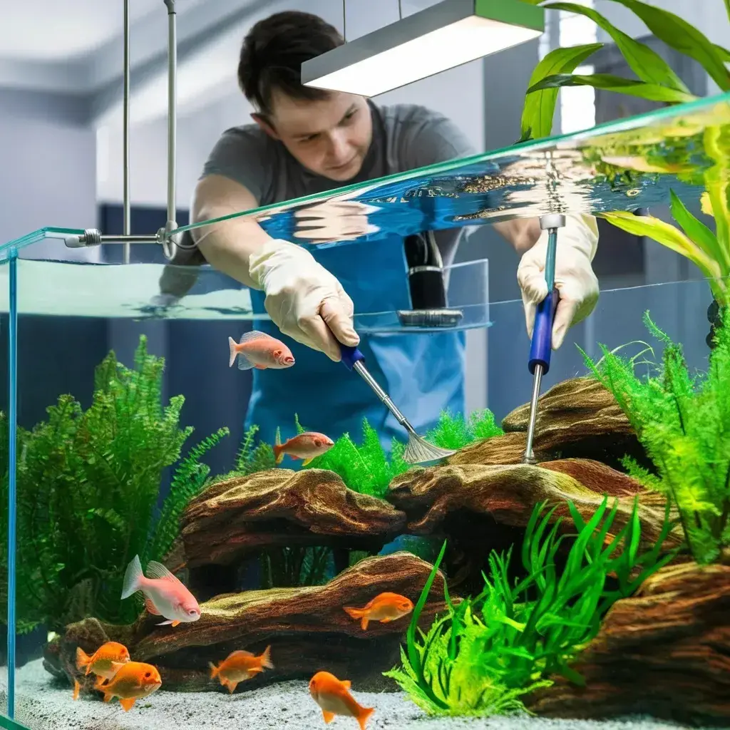 Special care cleaning services for delicate fish species, ensuring stress-free maintenance and optimal water conditions.